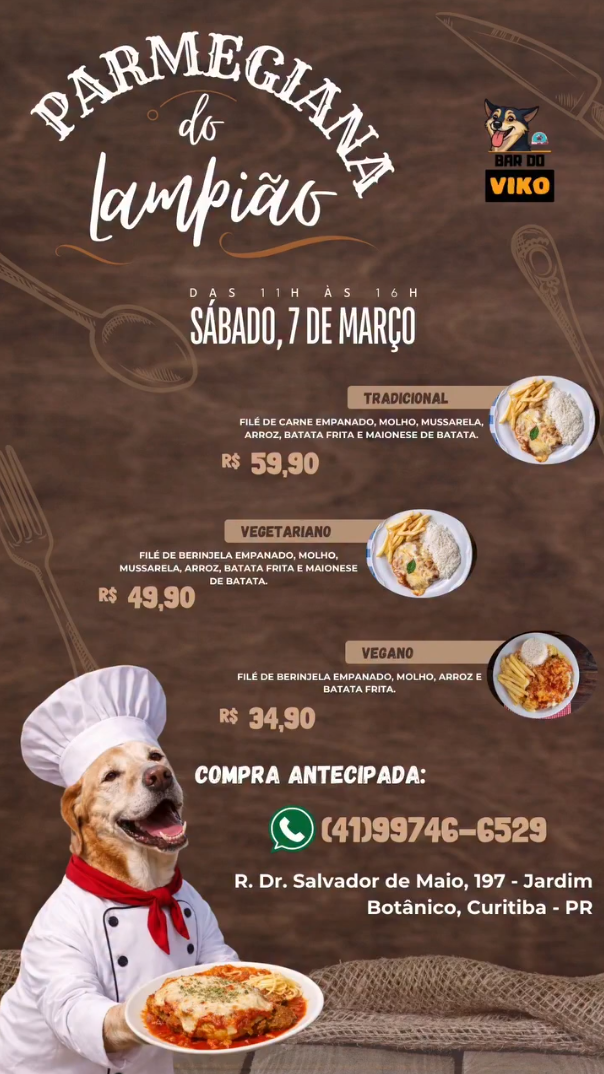 O Parmegiana do Lampião contará com três opções: